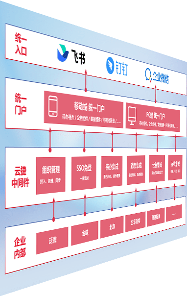 对协作平台提供支持服务,,,支持企业应用与协作平台对接,,,,包含组织同步、、、、消息集成、、、、待办集成等。。。。支持目前主流的协作平台:钉钉、、企微和飞书。。。。