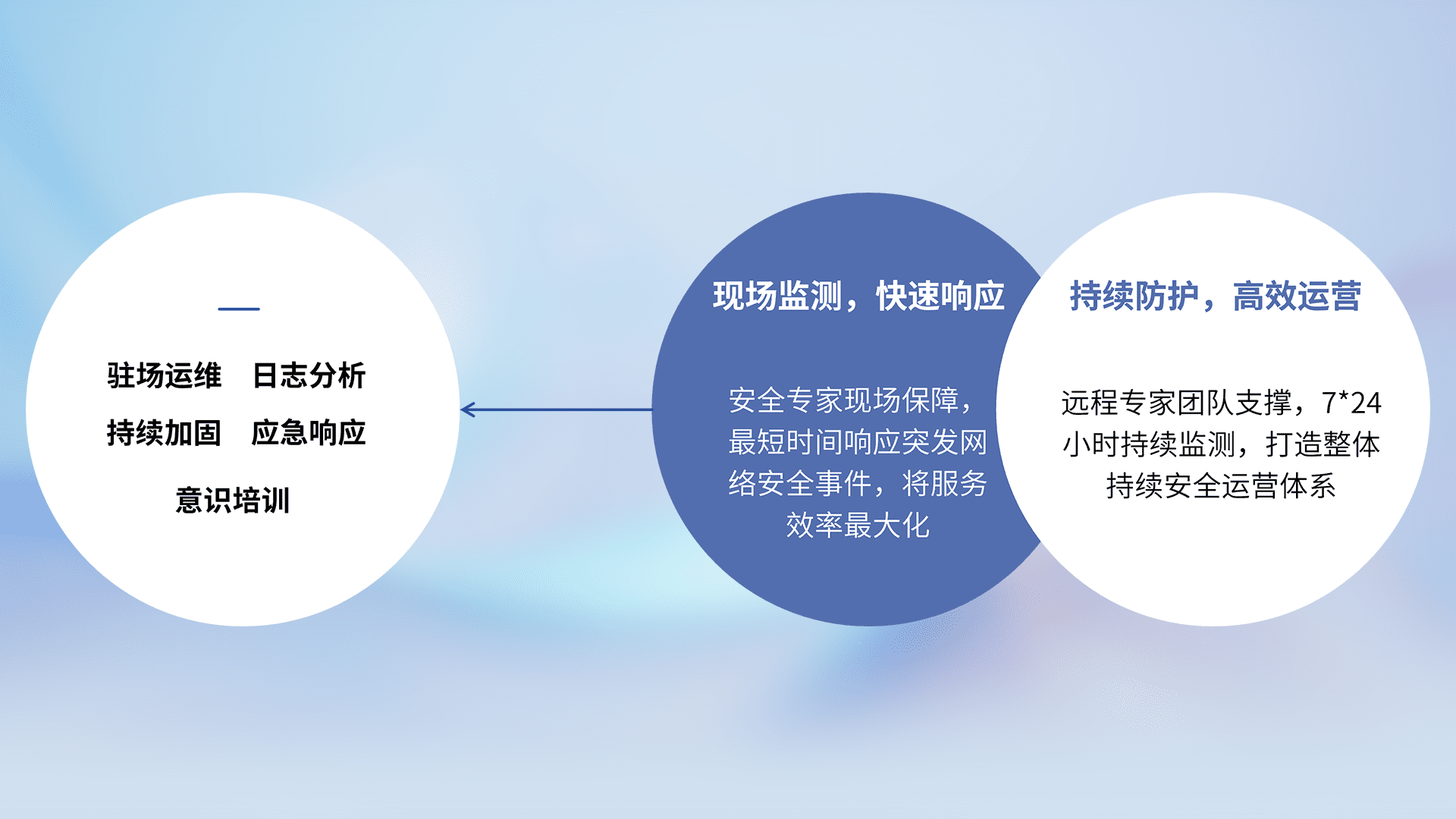 针对客户行业特性,,,,提供专属的一站式安全管理服务,,帮助客户全面感知网络空间威胁,,,通过安全专家的线上、、、、线下防护支持,,实现风险闭环,,,将安全保障常态化,,为客户打造常态化安全运维运营服务。。。。